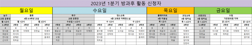 방과후 신청한 학생들에 대한 정보가 들어 있으니